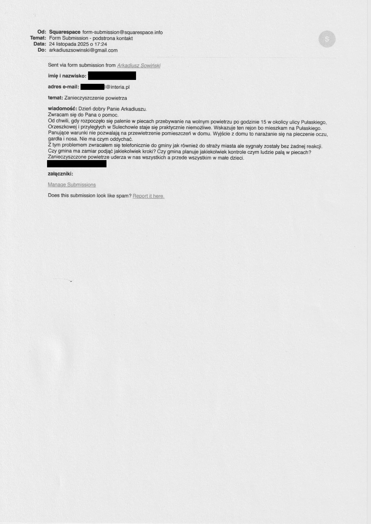 Do interpelacji załączyłem również mail otrzymany od mieszkańca.